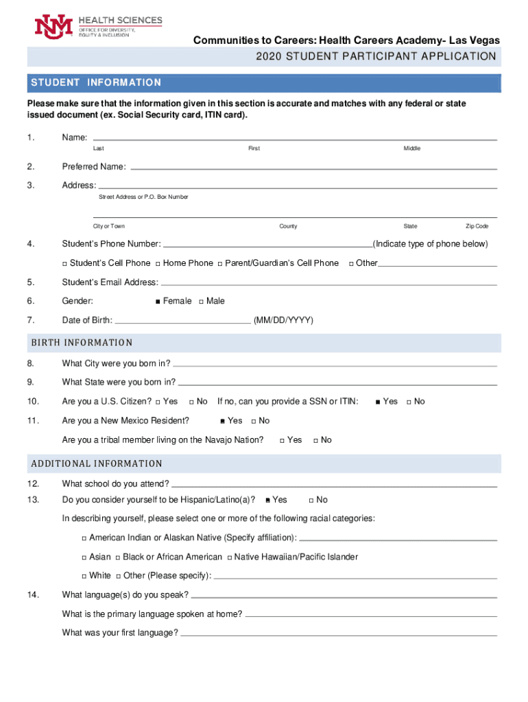 Get the free NM HCOP HEALTH CAREERS ACADEMY Las Vegas, NM PROGRAM DATES: JUNE 1st ... - hsc unm