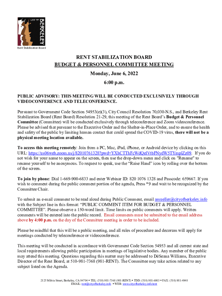 Get the free Budget & Personnel CommitteeBerkeley Rent Board
