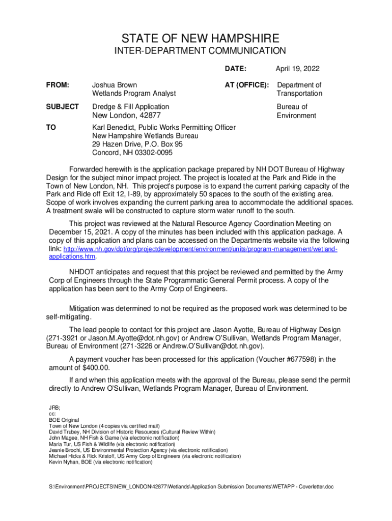 Wetlands Program AnalystSUBJECTDredge & Fill ApplicationDATE:April 19, 2022AT (OFFICE):Department of