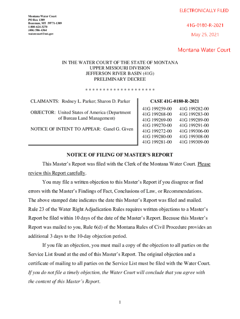 Get the free NOTICE OF FILING OF MASTER'S REPORT This Master's Report ... - courts mt