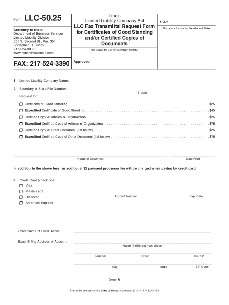 Any individual or entity looking to establish an LLC in Illinois is required to file fillioform-llc-50-25-illinoisfill - form llc-5025.