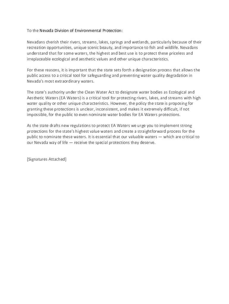 To the Nevada Division of Environmental Protection: Nevadans cherish their rivers, streams, lakes, springs and wetlands, particularly because of their recreation opportunities, unique scenic beauty,