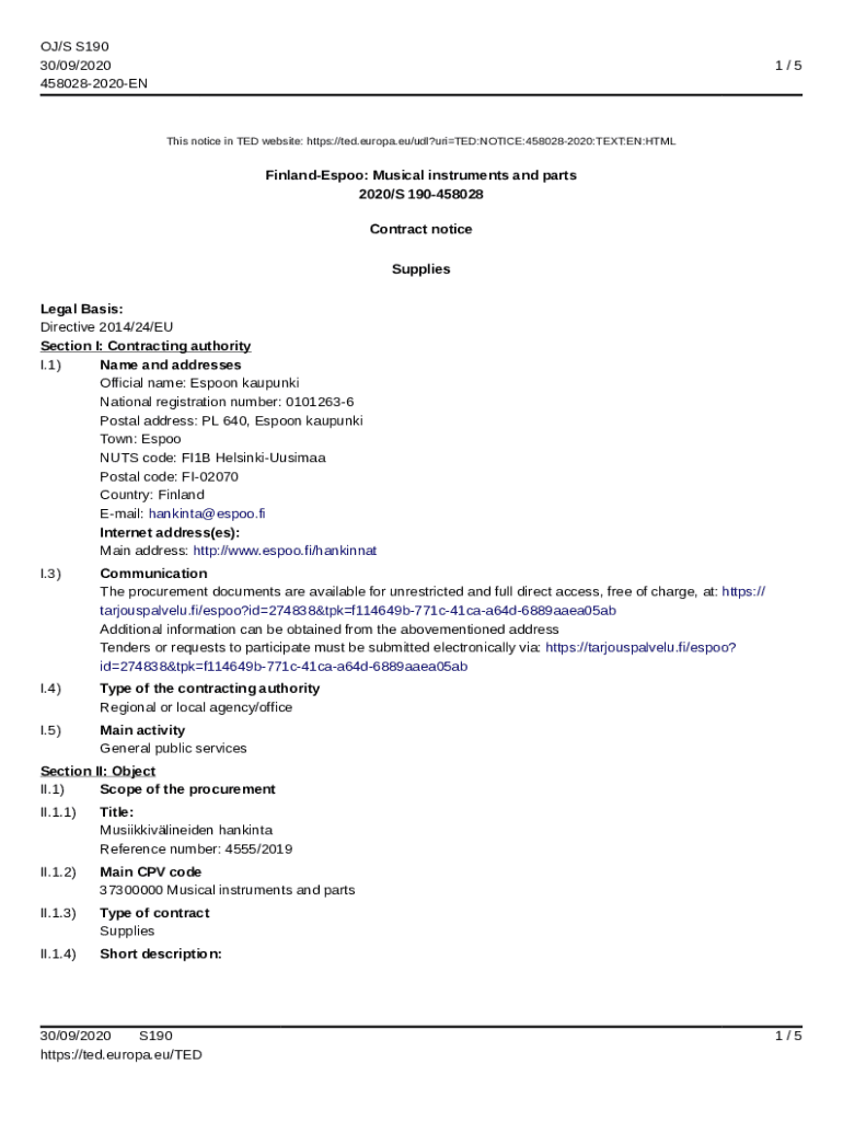 4580282020EN1/5This notice in TED website: https://ted.europa.eu/udl?uriTED:NOTICE:4580282020:TEXT:EN:HTMLFinlandEspoo: Musical instruments and parts