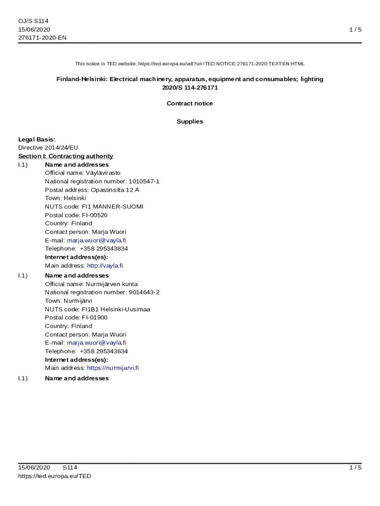 OJ/S S114 15/06/2020 2761712020EN1/5This notice in TED website: https://ted.europa.eu/udl?uriTED:NOTICE:2761712020:TEXT:EN:HTMLFinlandHelsinki: Electrical machinery, apparatus, equipment and consumables;