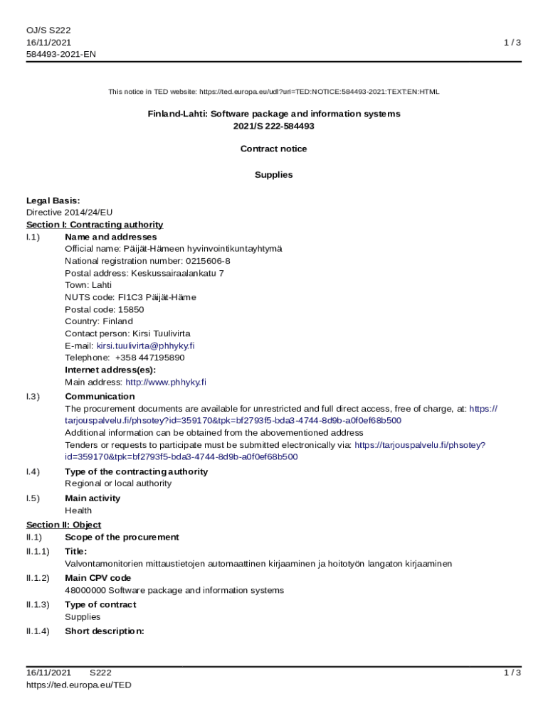 OJ/S S222 16/11/2021 5844932021EN1/3This notice in TED website: https://ted.europa.eu/udl?uriTED:NOTICE:5844932021:TEXT:EN:HTMLFinlandLahti: Software package and information systems 2021/S 222584493