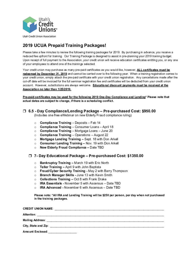 2019 UCLA Prepaid Training Packages! Please take a few minutes to review the following training packages for 2019. By purchasing in advance, you receive a reduced fee upfront for training. Our Training