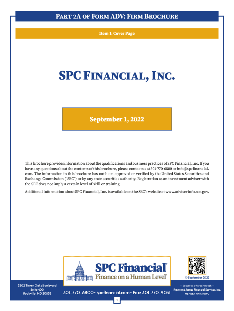 Part 2A of Form ADV: Firm Brochure Item 1: Cover Page SPC Financial, Inc. September 1, 2022This brochure provides information about the qualifications and business practices of SPC Financial, Inc.
