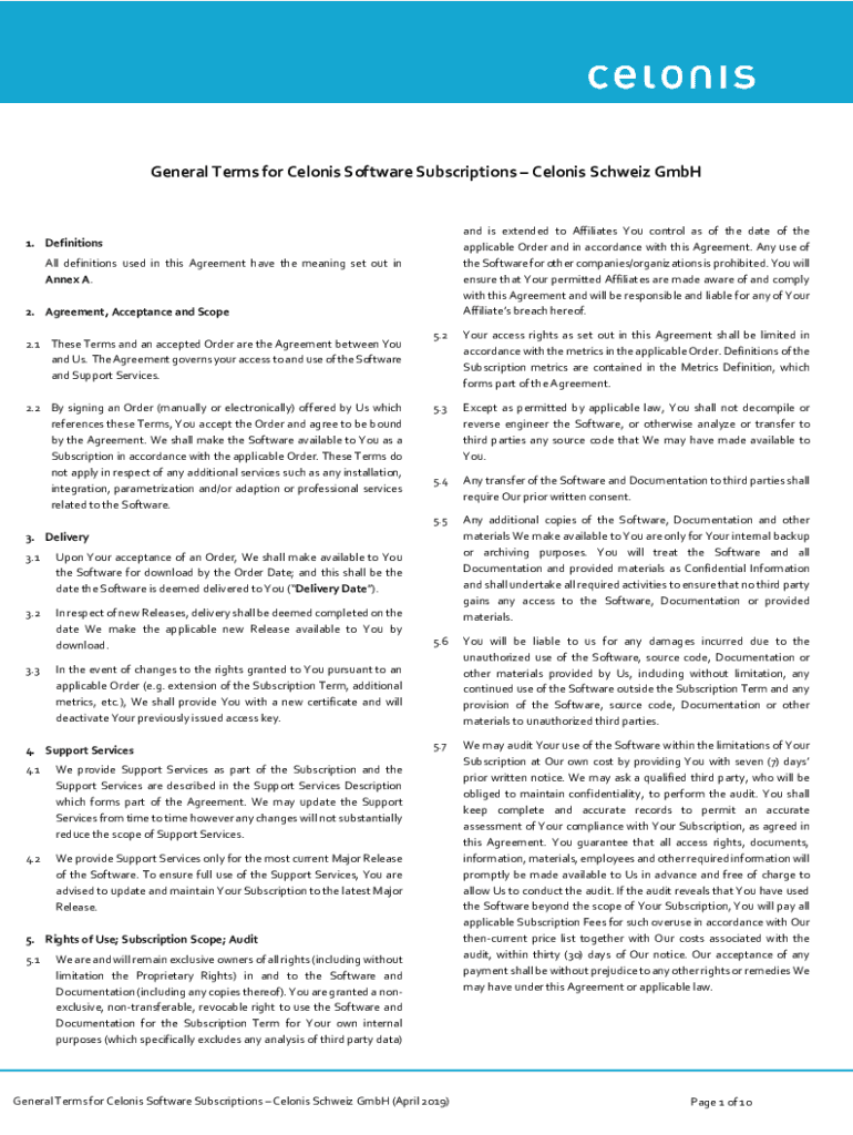 Get the free General Terms for Celonis Software-as-a-Service - Celonis Schweiz GmbH