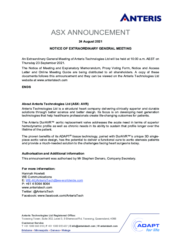 Get the free Notice of Extraordinary General Meeting/Proxy Form - Anteris ...
