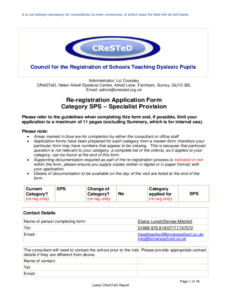 It is not always necessary for consultants to enter comments, in which case the field will be left blank. Council for the Registration of Schools Teaching Dyslexic Pupils Administrator: Liz Crossly