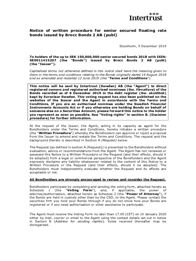 Get the free Notice of written procedure for senior secured floating rate ...