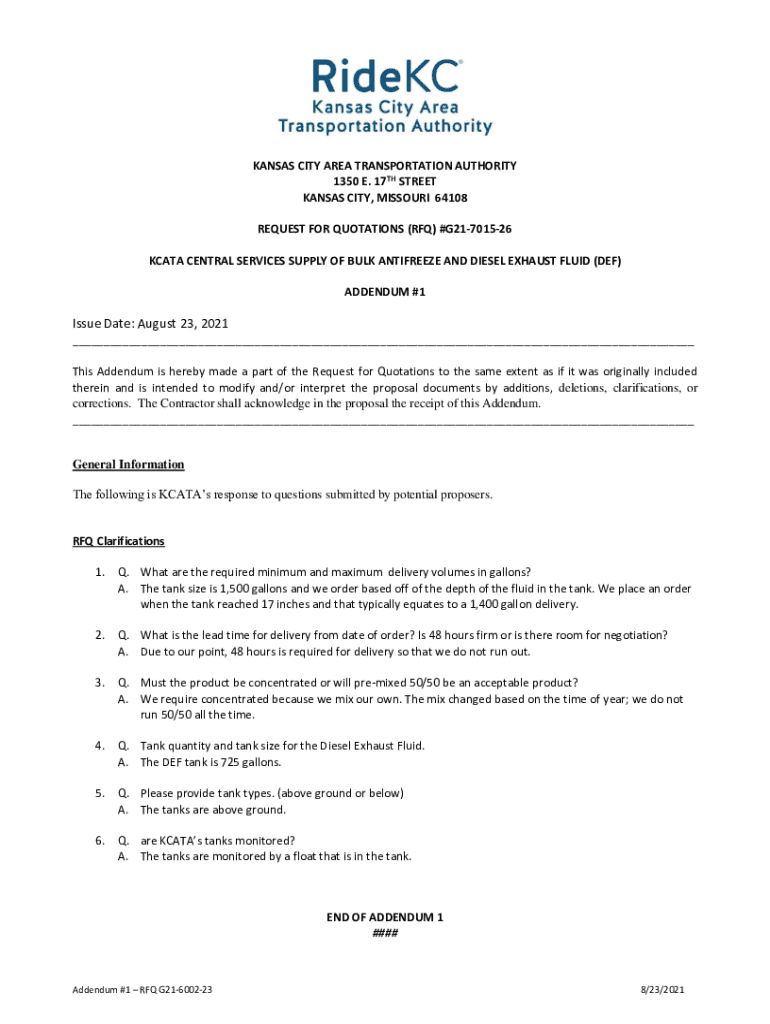 Get the free REQUEST FOR QUOTATIONS (RFQ) #G21-6002-23 SUPPLY OF BULK ... - KCATA