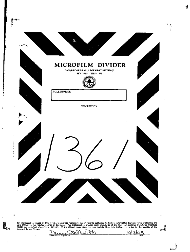 MICROFILM DIVIDER OMB/RECORDS MANAGEMENT DIVISION SON 2053 (2/85) SMA, .;I Description\' \'The, micrograph o images on this ff LM are accurate reproductions of records Del f hard to Modern Information