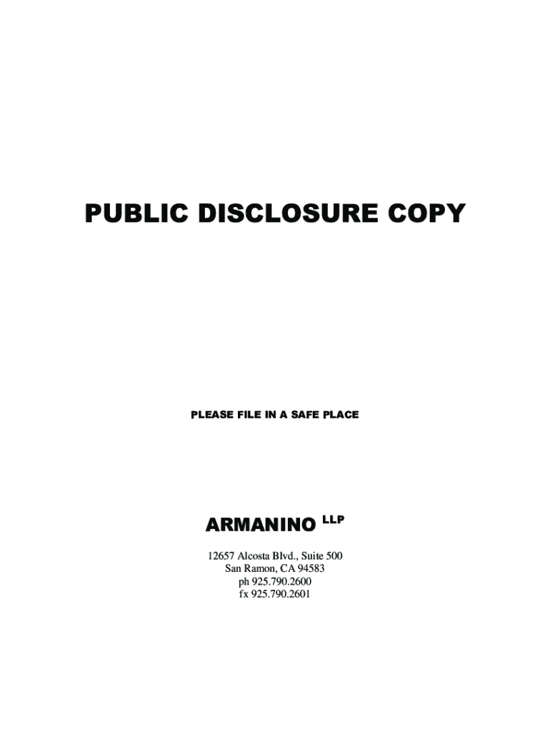 PUBLIC DISCLOSURE COPYPLEASE FILE IN A SAFE PLACEARMANINO LLP 12657 Acosta Blvd., Suite 500 San Ramon, CA 94583 pH 925.790.2600 FX 925.790.2601PUBLIC DISCLOSURE COPY STATE REGISTRATION NO. C1876928