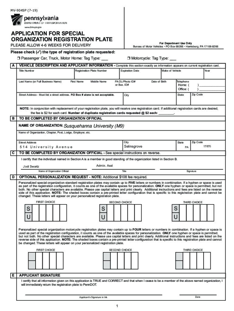 Get the free Special Fund Registration Plates - PennDOT Driver & Vehicle Services