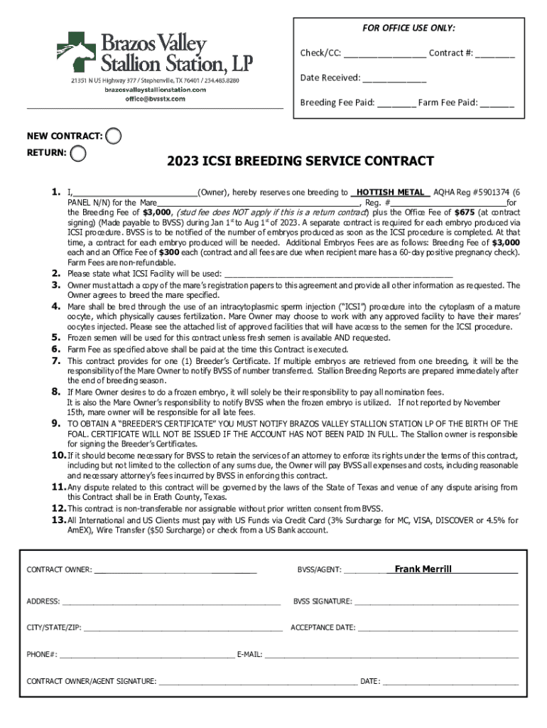 Get the free ICSI BREEDING SERVICE CONTRACT - Brazos Valley Stallion Station