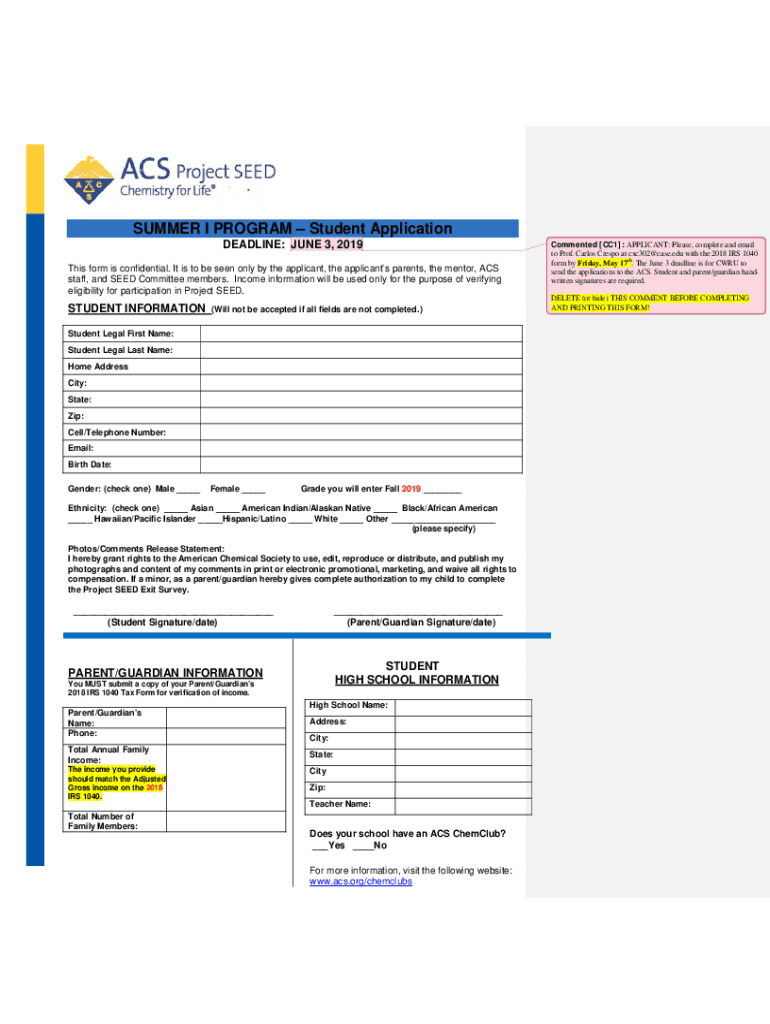 This form is confidential. It is to be seen only by the applicant, the applicants parents, the mentor, ACS
