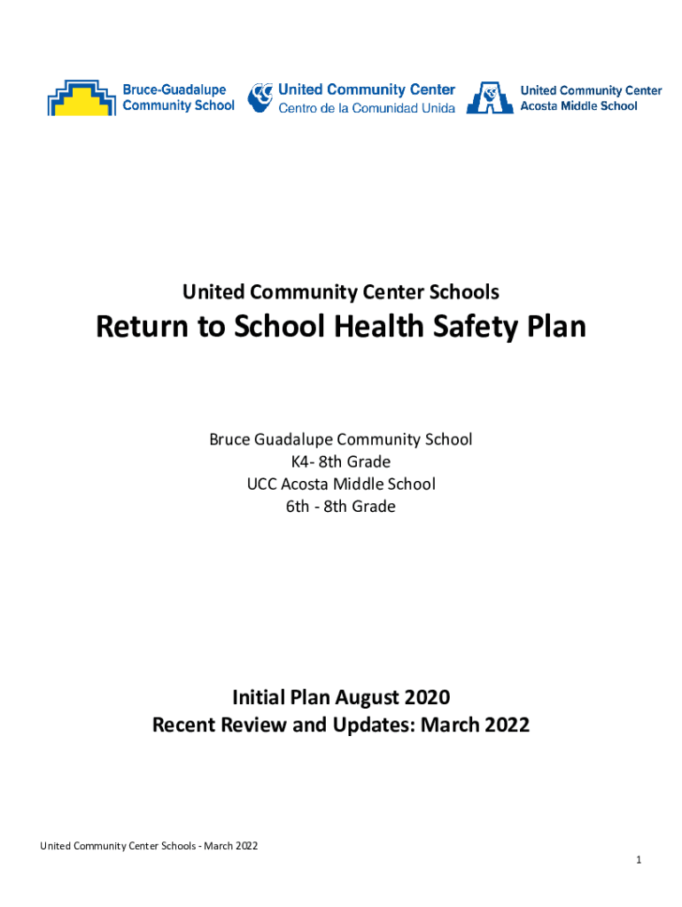 United Community Center SchoolsReturn to School Health Safety Plan Bruce Guadalupe Community School