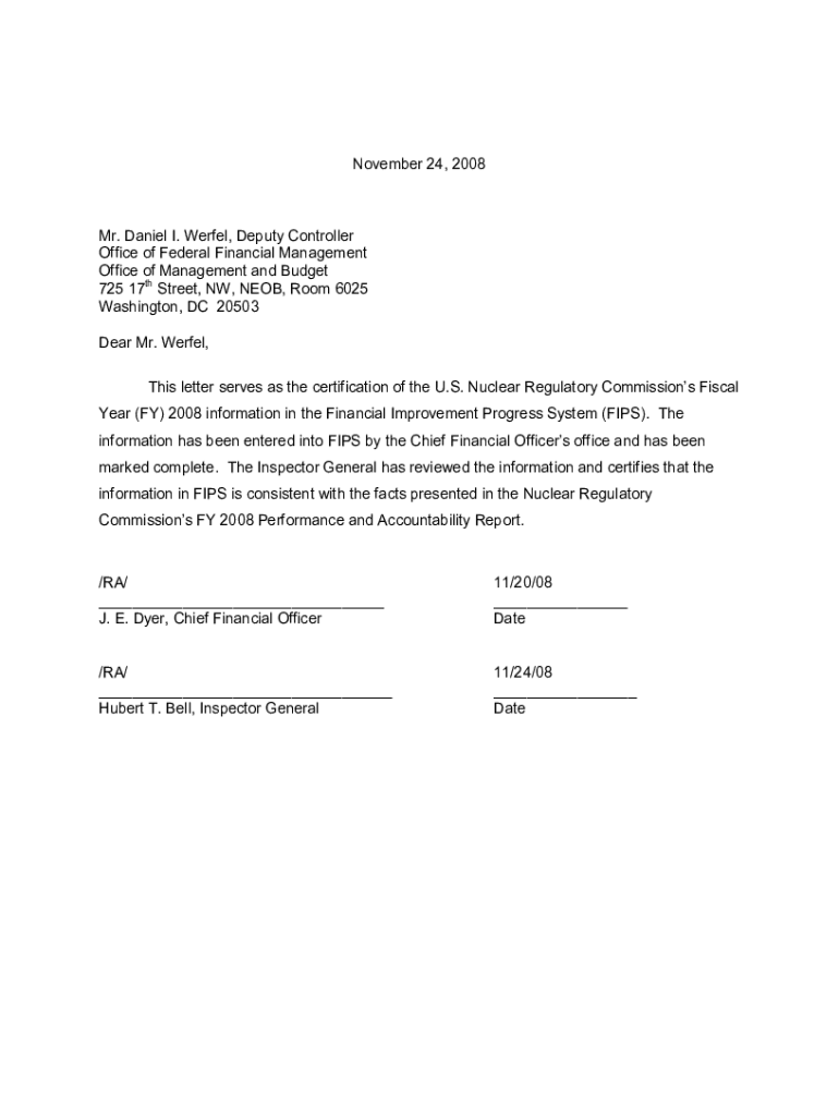 November 24, 2008Mr. Daniel I. Were, Deputy Controller Office of Federal Financial Management Office of Management and Budget 725 17th Street, NW, NEON, Room 6025 Washington, DC 20503 Dear Mr. Were,