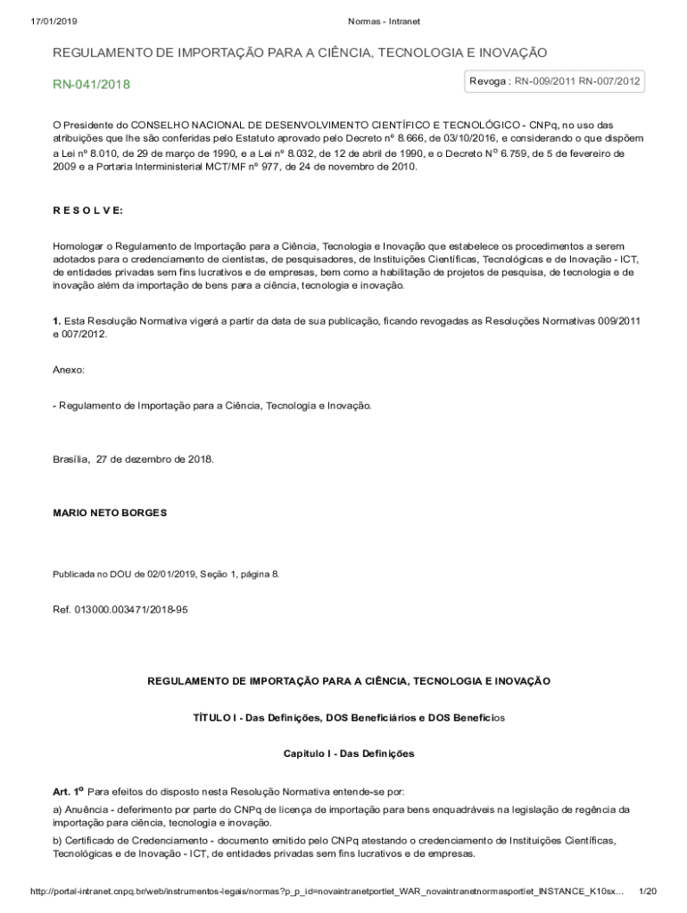 Revolt : RN009/2011 RN007/2012RN041/2018O President do CONSUELO NATIONAL DE DESENVOLVIMENTO SCIENTIFIC E TECNOLGICO