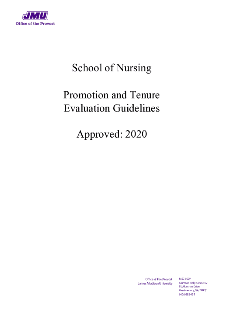 Get the free Guidelines for Annual Evaluations, Promotion and Tenure Criteria for JMU Nursing
