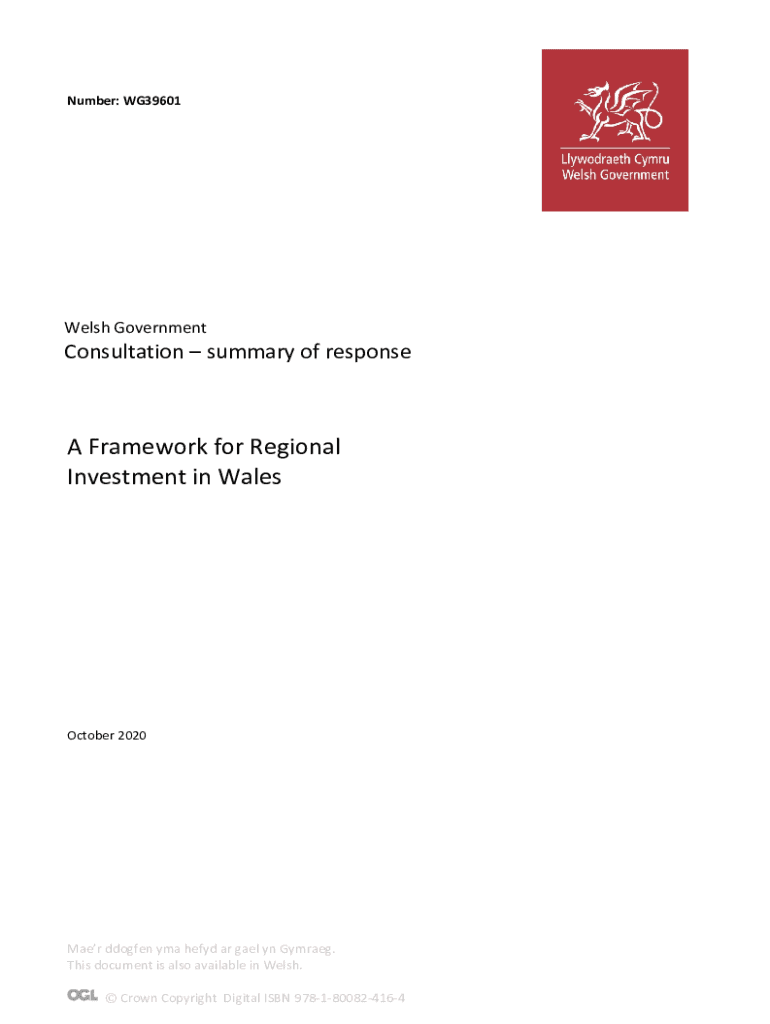 Number: WG39601Welsh GovernmentConsultation summary of response Framework for Regional Investment in Wales October 2020Maer dozen MA held AR Gael in Garage. This document is also available in Welsh.