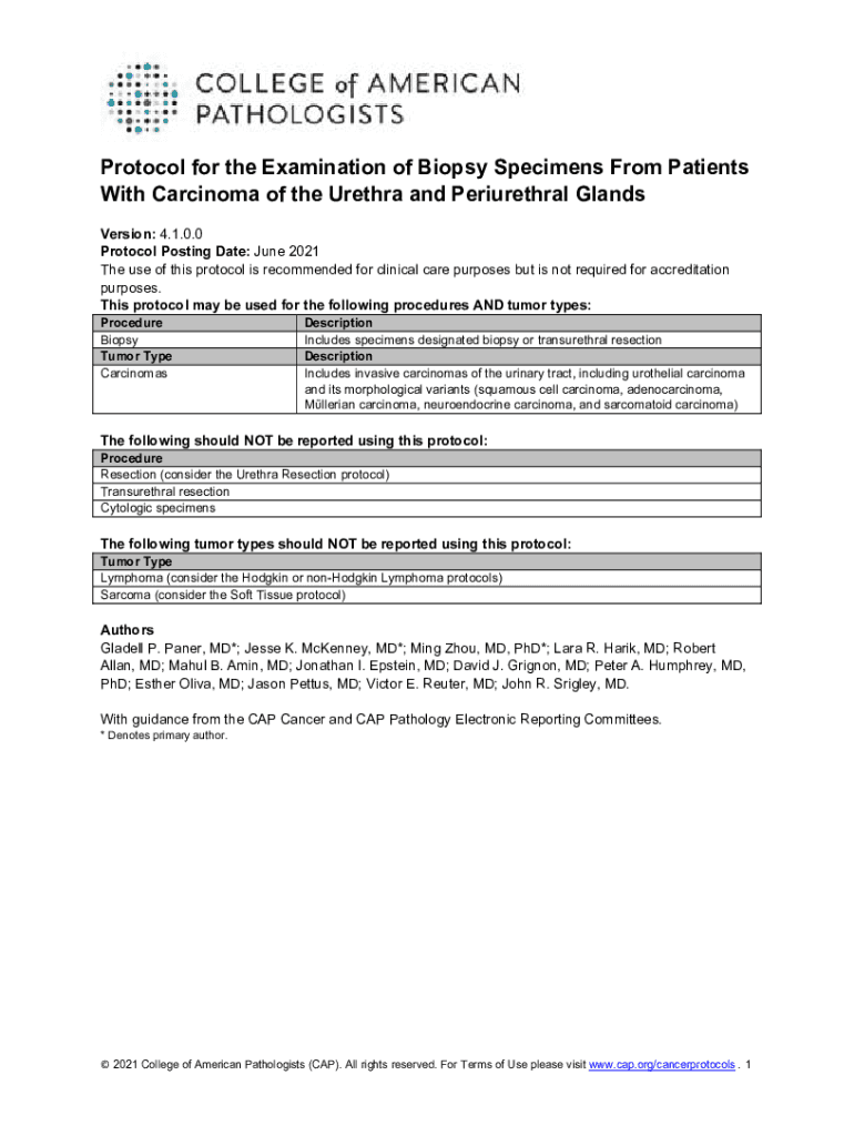 Get the free Protocol for the Examination of Biopsy and Transurethral ... - CAP