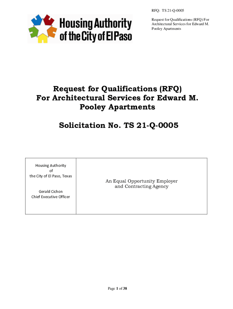RFQ: TS 21Q0005 Request for Qualifications (RFQ) For Architectural Services for Edward M. Poole ApartmentsRequest for Qualifications (RFQ) For Architectural Services for Edward M. Poole Apartments