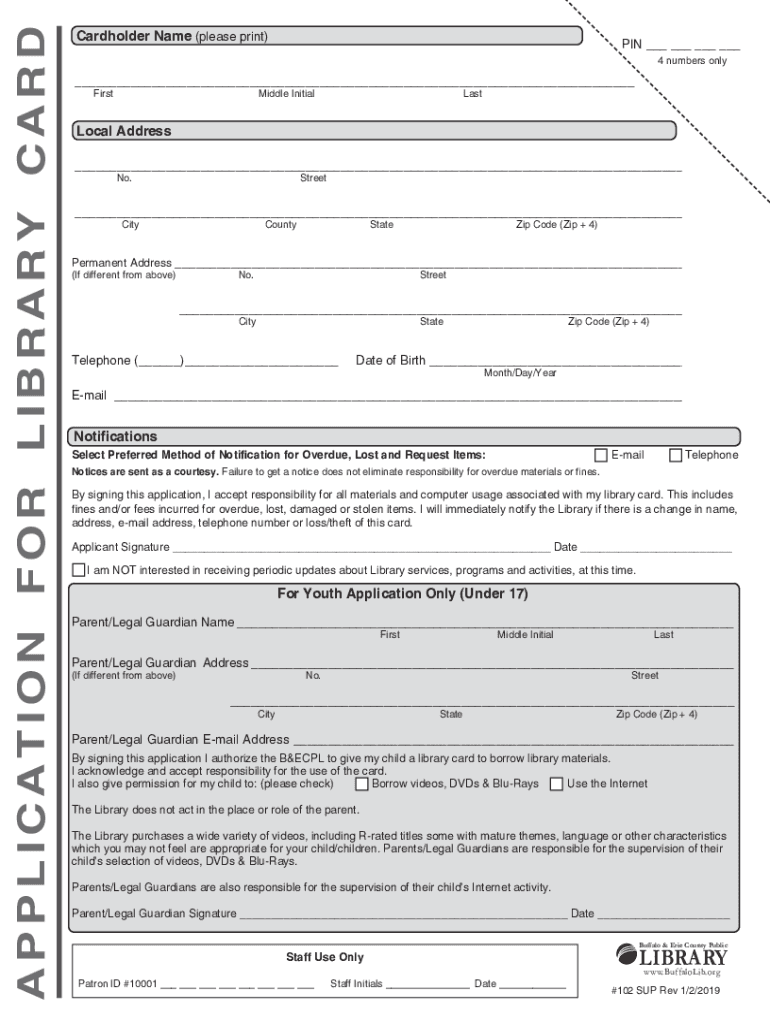 Get the free APPLICATION FOR LIBRARY CARD - Buffalo Public Schools