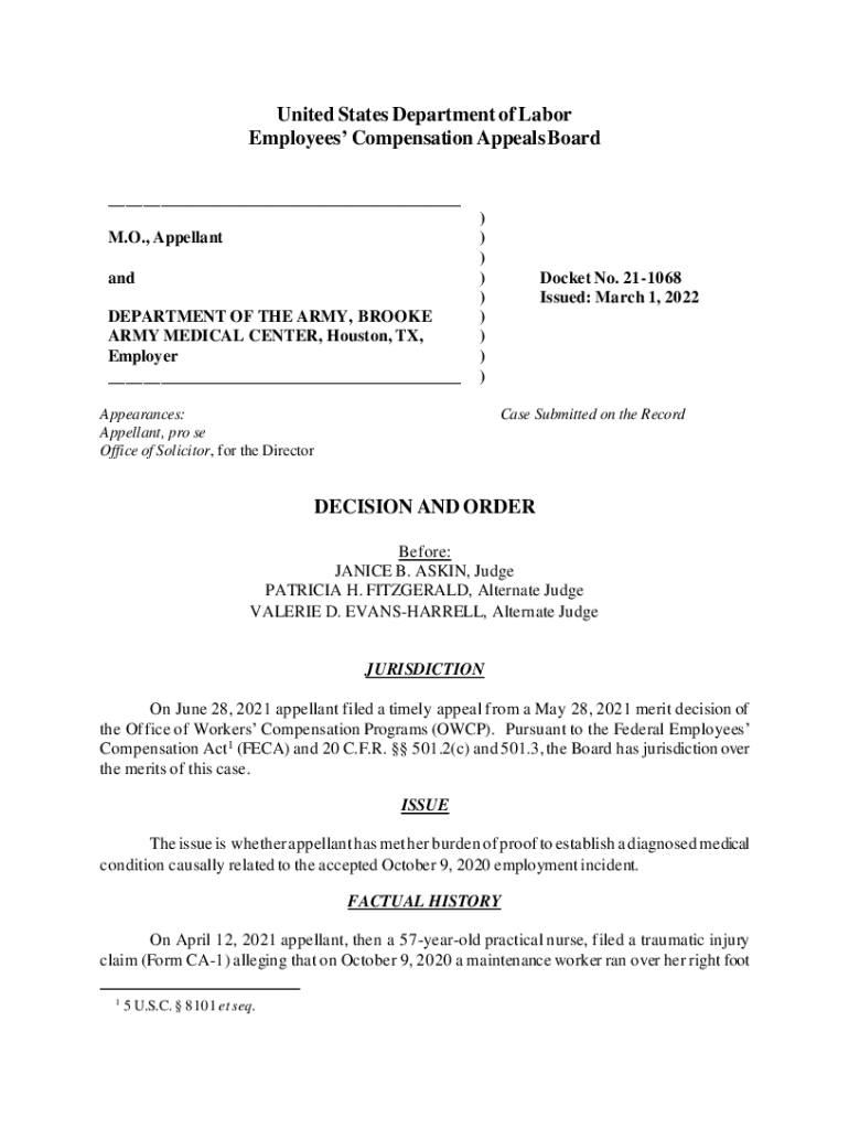 Get the free Employees' Compensation Appeals BoardU.S. Department ofEmployees Compensation Appeal...