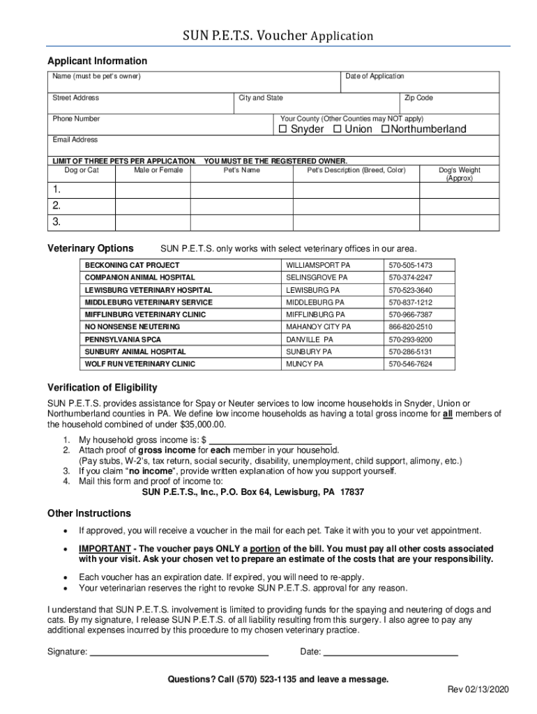 Get the free Voucher Application - SUN P.E.T.S. Spay/Neuter