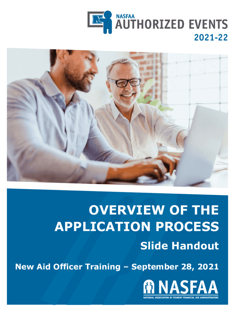 AUTHORIZED EVENTS 202122OVERVIEW OF THE APPLICATION PROCESS Slide Handout New Aid Officer Training September 28, 2021 20102021 by National Association of Student Financial Aid Administrators (NAS