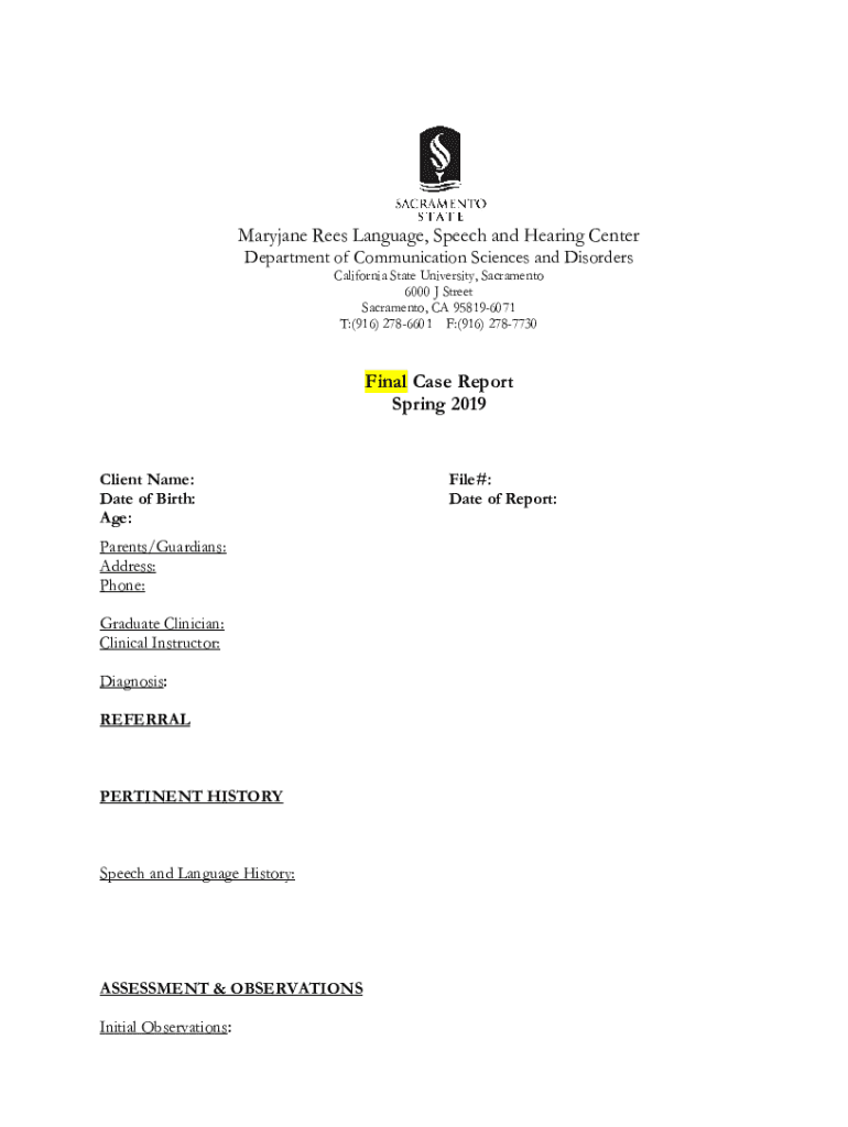 Maryland Sees Language, Speech and Hearing Center Department of Communication Sciences and Disorders California State University, Sacramento 6000 J Street Sacramento, CA 958196071 T:(916) 2786601