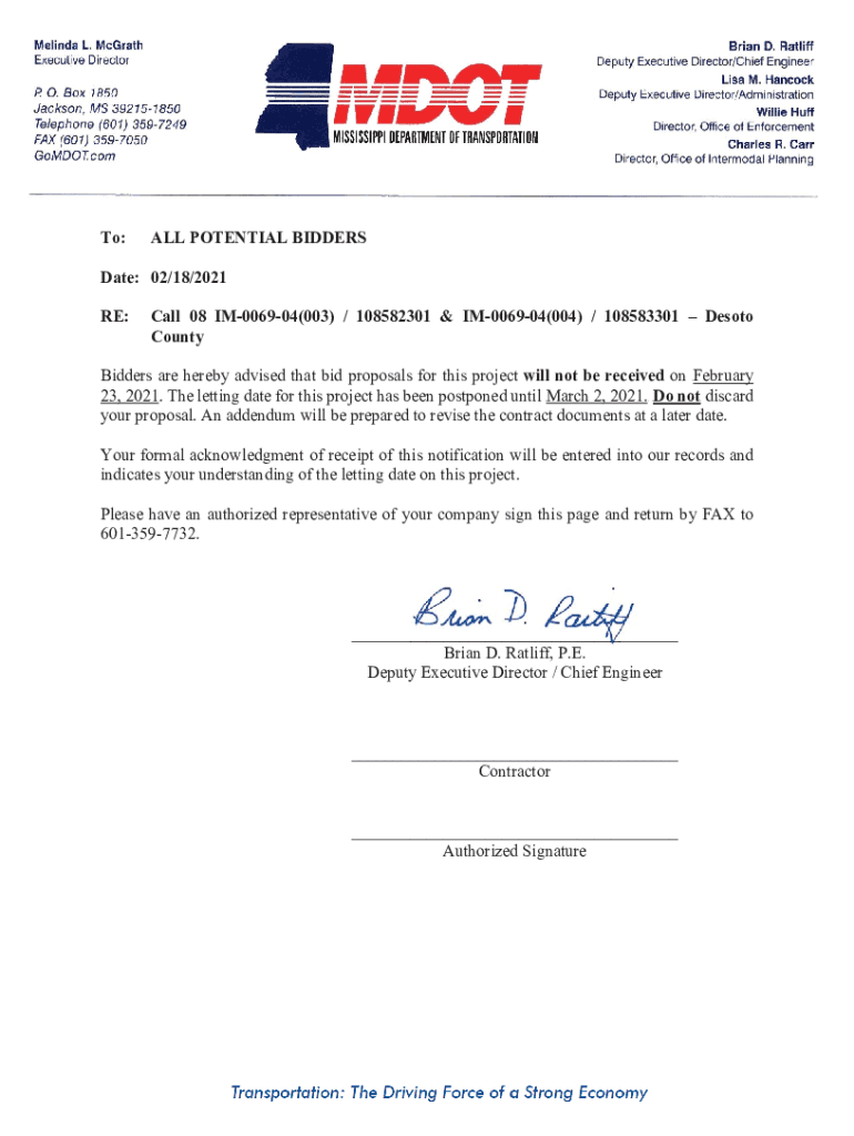 To:ALL POTENTIAL BIDDERSDate: 02/18/2021
