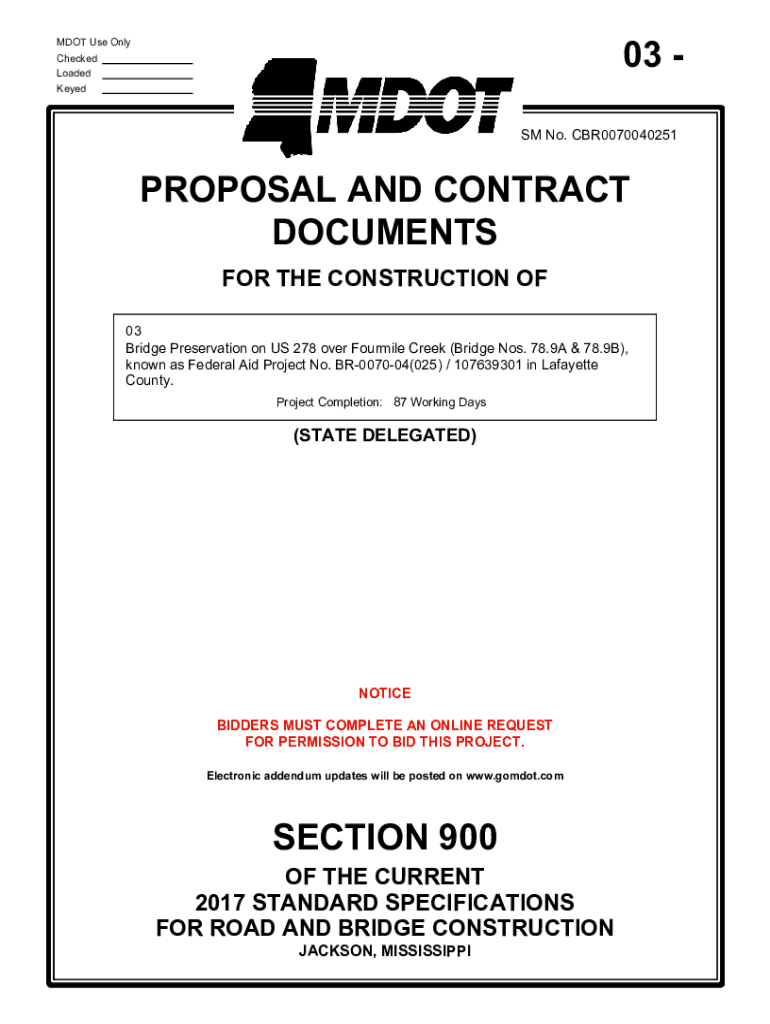03 DOT Use Only Checked Loaded Keyed SM No. CBR0070040251PROPOSAL AND CONTRACT DOCUMENTS FOR THE CONSTRUCTION OF 03 Bridge Preservation on US 278 over Four mile Creek (Bridge Nos. 78.9A & 78.9B),
