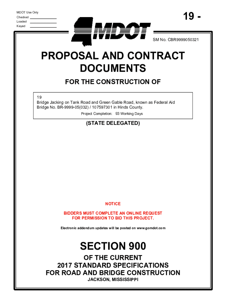 19 DOT Use Only Checked Loaded Keyed SM No. CBR9999050321PROPOSAL AND CONTRACT DOCUMENTS FOR THE CONSTRUCTION OF 19 Bridge Jacking on Tank Road and Green Gable Road, known as Federal Aid Bridge No.