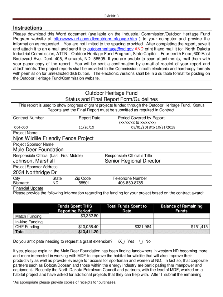 Exhibit BInstructionsPlease download this Word document (available on the Industrial Commission/Outdoor Heritage Fund Program website at http://www.nd.gov/ndic/outdoorinfopage.htm) to your computer