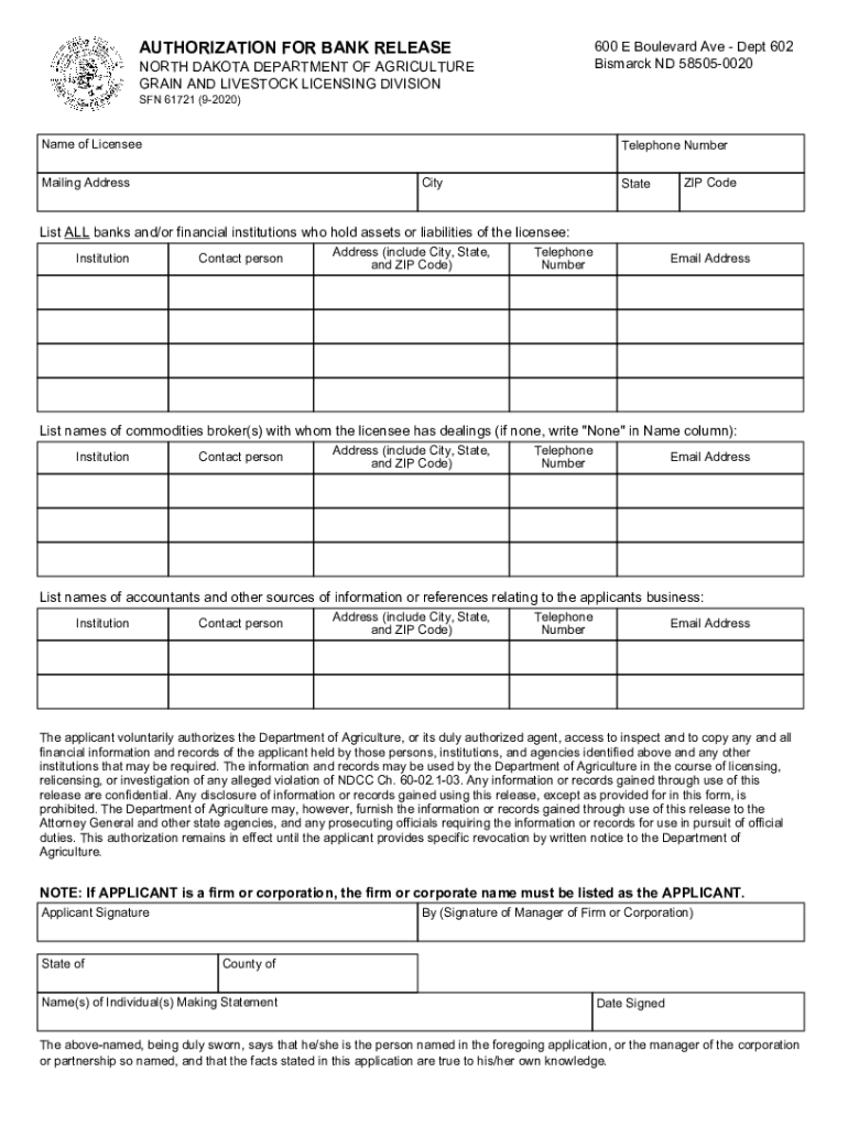 Get the free AUTHORIZATION FOR BANK RELEASE ND.gov