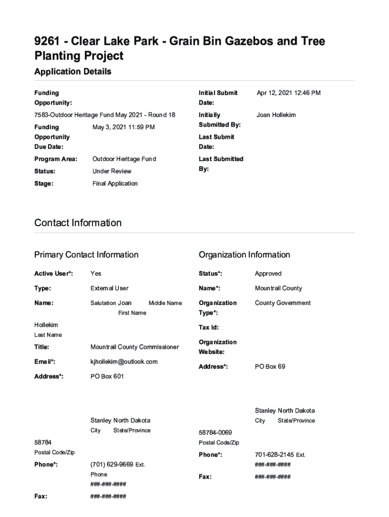 FundingInitial SubmitOpportunity:Date:7583Outdoor Heritage Fund May 2021 Round 18InitiallyFundingSubmitted By:May