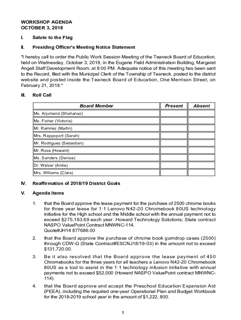 I. SalutetotheFlagII. PresidingOfficer\'sMeetingNoticeStatement\” IherebycalltoorderthePublicWorkSessionMeetingoftheTeaneckBoardofEducation,