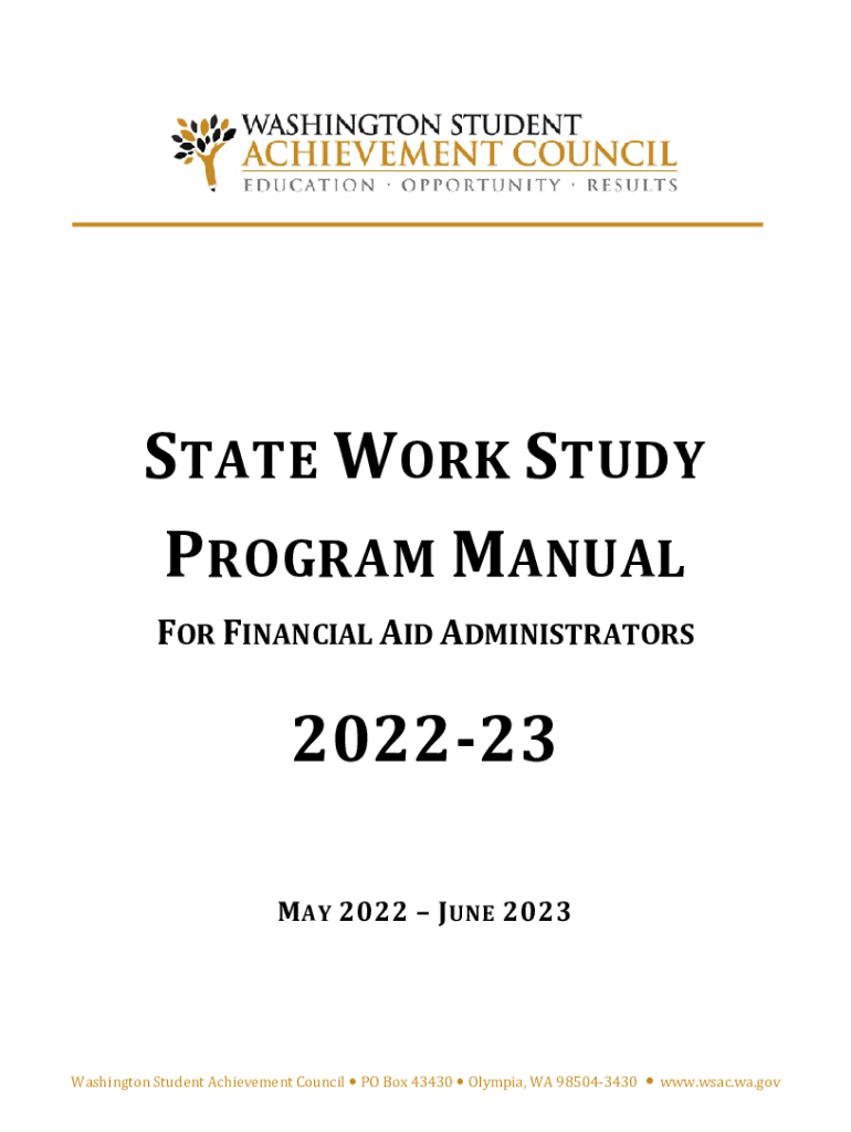 M A 2022 J ONE 2023Washington Student Achievement Council PO Box 43430 Olympia, WA 985043430 www.wsac.wa.govState Work Study