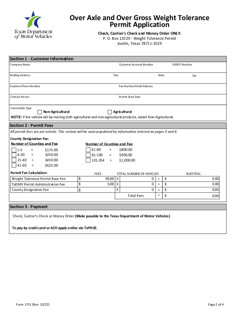 Over Axle and Over Gross Weight Tolerance Permit Application Instructions and InformationFirst time applicants1. Agricultural products: a. Complete pages 24 of this application b. Submit by MAIL ONLY