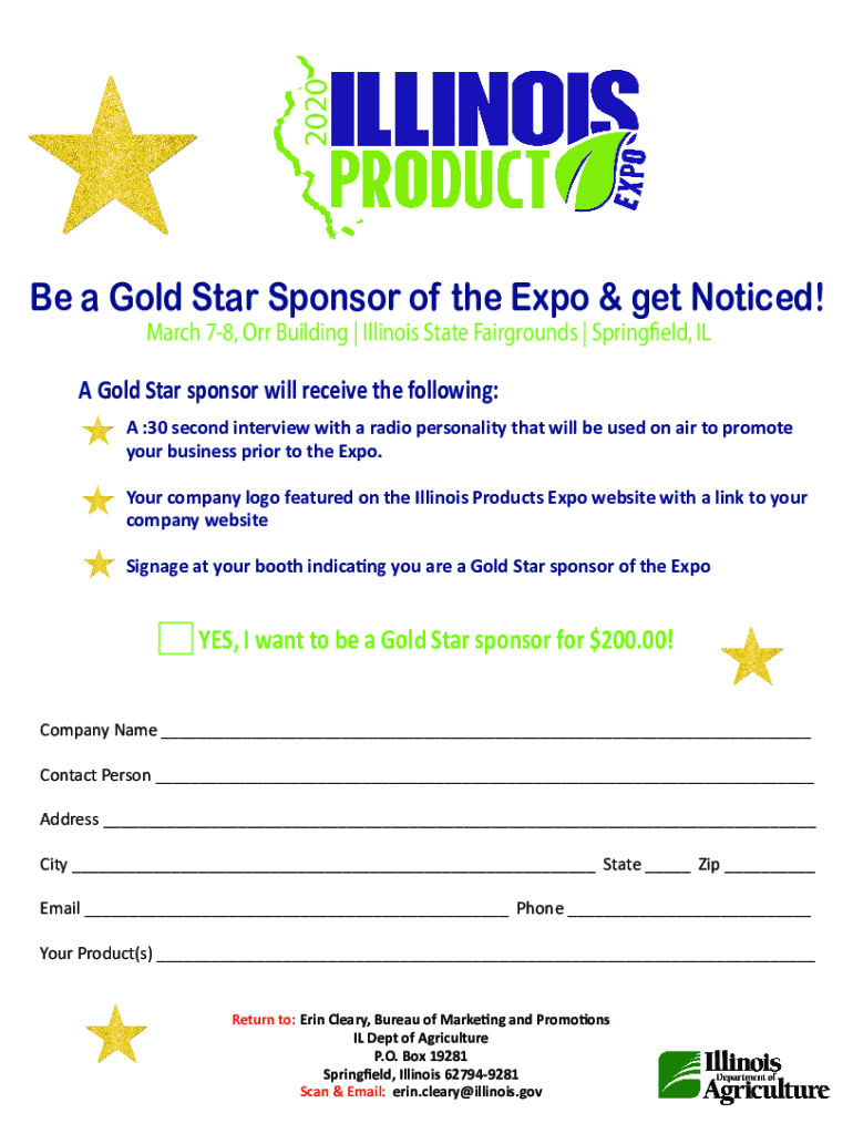 Be a Gold Star Sponsor of the Expo & get Noticed! March 78, Orr Building | Illinois State Fairgrounds | Springfield, ILA Gold Star sponsor will receive the following:)A :30 second interview with a