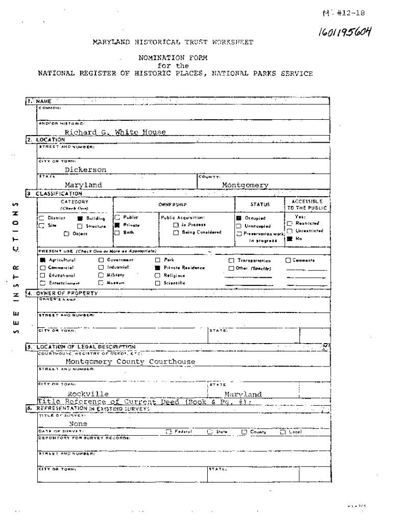 M \”.#1218/(po119stttJJI MARY. A.HISTORICAL TRUST WCRKSHEETNOMINATION FORM for the NATIONAL REGISTER OF HISTORIC PLACES, NATIONAL PARKS SERVICE!.. NA. V. E COMMON;ANO/QR HISTORIC:12. Richard G.