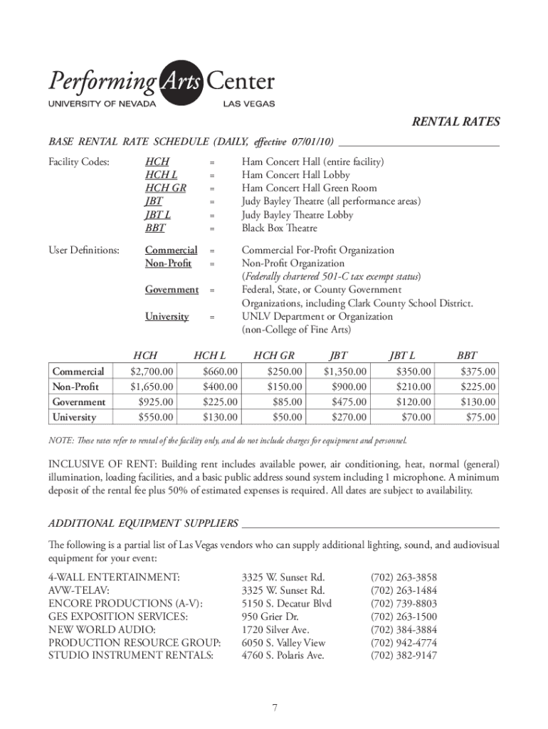 BASE RENTAL RATE SCHEDULE (DAILY, effective 07/01/10) ___