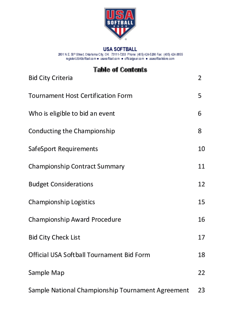 USA SOFTBALL2801 N.E. 50th Street, Oklahoma City, OK 731117203 Phone: (405) 4245266 Fax: (405) 4243855 registerUSASoftball.com usasoftball.com officialgear.com usasoftballstore. Notable of Contents