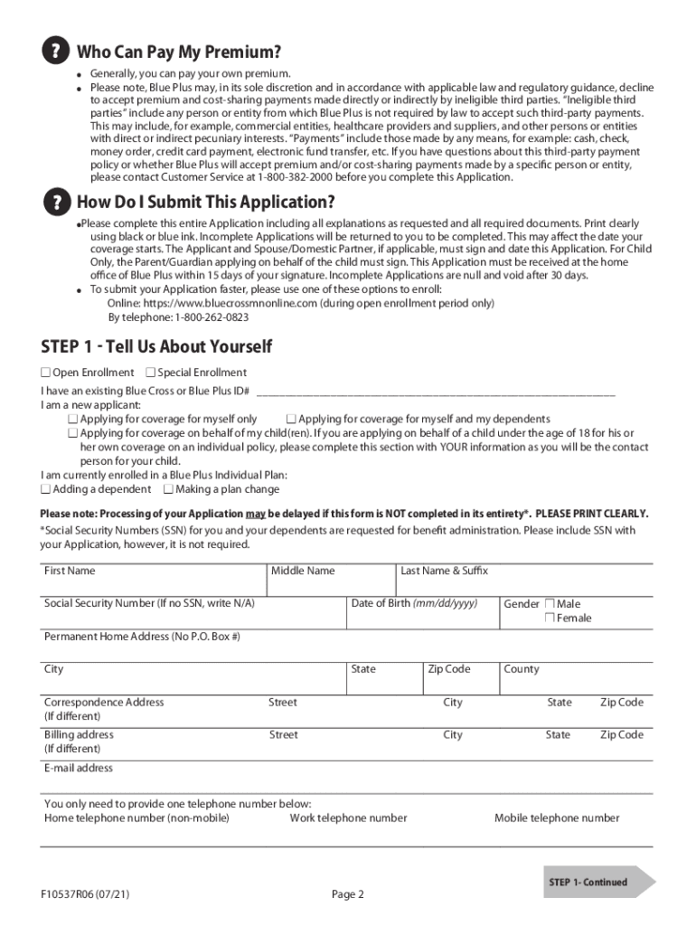Application For Individual/Family Plan Health Insurance Please Complete Steps 1 9. Step 1) Step 2) Step 3) Step 4) Step 5) Step 6) Step 7) Step 8) Step 9)Tell us about yourself. Tell us about your