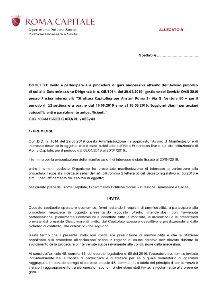 Direction Necessary e SaluteALLEGATO Settable.GHETTO: Invite a participated alley procedure DI Gary successive albeit dellAvviso public