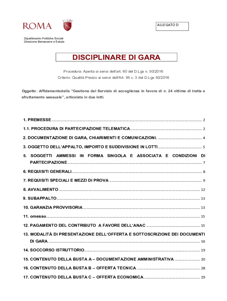 Get the free DISCIPLINARE DI GARA/INVITO - comune.roma.it