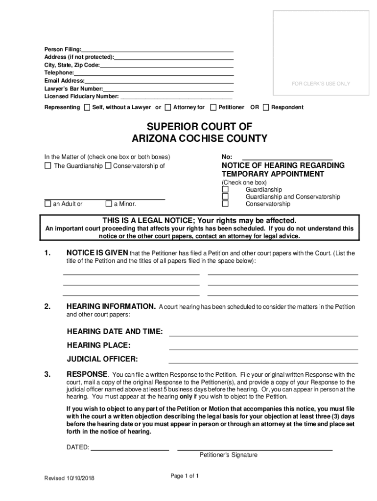Get the free NOTICE OF HEARING REGARDING TEMPORARY APPOINTMENT (Check one box). NOTICE OF HEARING...